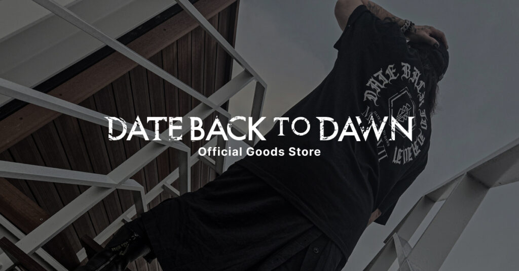 2025.09.26 INFO DATE BACK TO DAWN Official Goods Store OPEN ライブハウスのみで販売していたグッズをたくさんの声をいただいてオンラインで販売することになりました。ぜひグッズを手にしてライブハウスに遊びにきてください。 https://shop.datebacktodawn.com